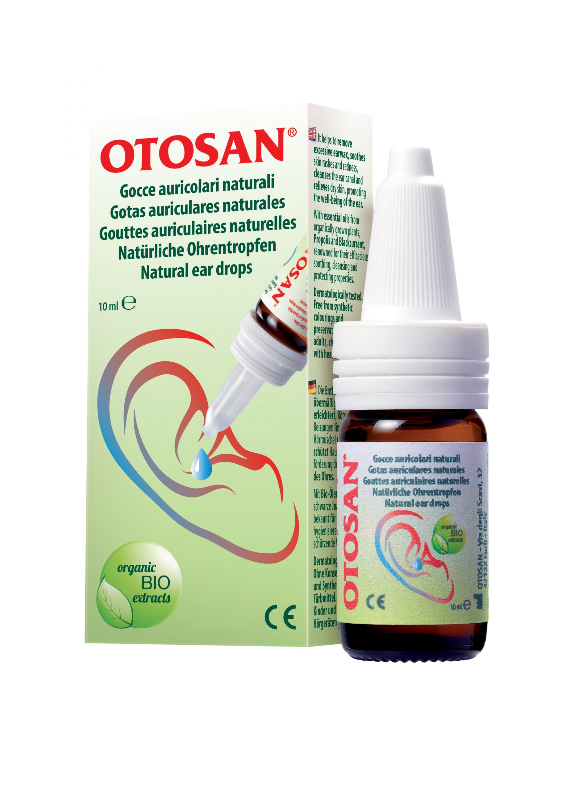 Otosan® hat es sich zur Aufgabe gemacht, Produkte für Nase und Ohren zu entwickeln. Otosan® Ohrentropfen sind ein reines Naturprodukt ohne Farbstoffe. Durch die Zusammensetzung von ätherischen Ölen, Propolis und schwarzer Johannisbeere, unterstützen die Ohrentropfen eine tiefe Ohrenreinigung, ohne die Haut auszutrocknen. Zudem wird der Austritt von Ohrenschmalz durch den Einsatz von Otosan® Ohrentropfen gefördert. Inhalt 10ml